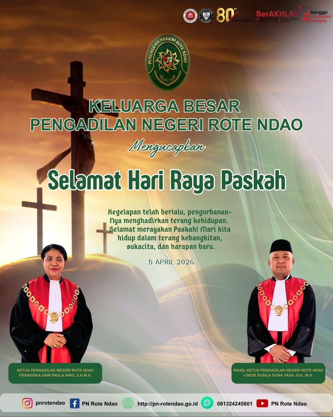 Pimpinan dan Keluarga Besar Pengadilan Negeri Rote Ndao mengucapkan :